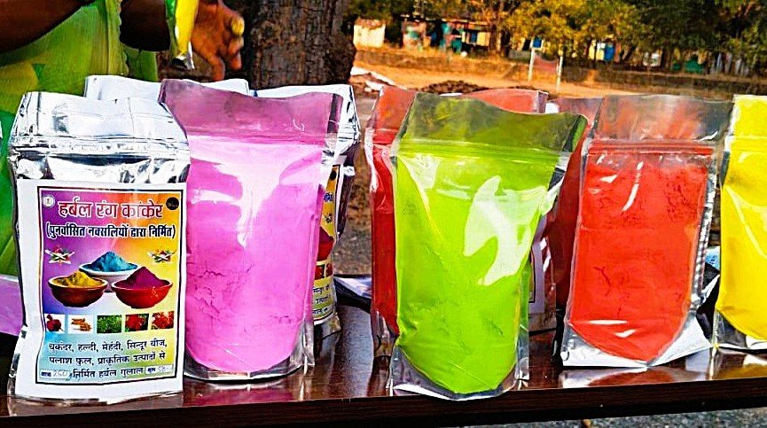 छत्तीसगढ़ राज्य ग्रामीण आजीविका मिशन (बिहान) से जुड़ी महिलाएं आत्मनिर्भर बनकर स्व-सहायता समूहों के माध्यम से हर्बल गुलाल तैयार कर रही हैं। प्राकृतिक फूलों, सब्जियों से बने ये रंग पूरी तरह सुरक्षित और पर्यावरण-अनुकूल हैं। सुगंध के लिए गुलाबजल और प्राकृतिक इत्र का उपयोग किया जाता है, जिससे रंगों की महक भी मन को भा जाती है।