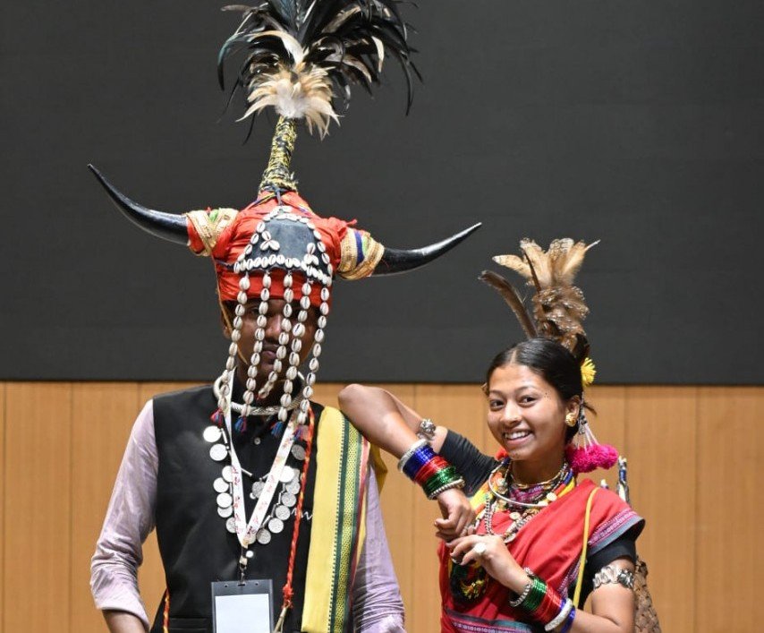 रायपुर : नवा रायपुर स्थित आदिवासी संग्रहालय में मार्च 2026 को आयोजित ‘आदि पर्व 2026’ में छत्तीसगढ़ की समृद्ध आदिवासी संस्कृति और परंपराओं की भव्य झलक देखने को मिली। इस आयोजन में प्रदेश की विभिन्न जनजातियों के प्रतिभागियों ने अपनी पारंपरिक वेशभूषा, लोक नृत्य, गीत और सांस्कृतिक परंपराओं की आकर्षक प्रस्तुति दी। इस कार्यक्रम में नारायणपुर जिले के अबूझमाड़ क्षेत्र से शामिल हुई प्रतिभागी वनिता नेताम ने पारंपरिक जनजातीय वेशभूषा में मंच पर अपनी संस्कृति की शानदार प्रस्तुति दी। उनकी पारंपरिक पोशाक और आभूषणों ने कार्यक्रम में विशेष आकर्षण पैदा किया और उपस्थित दर्शकों का ध्यान अपनी ओर खींचा।